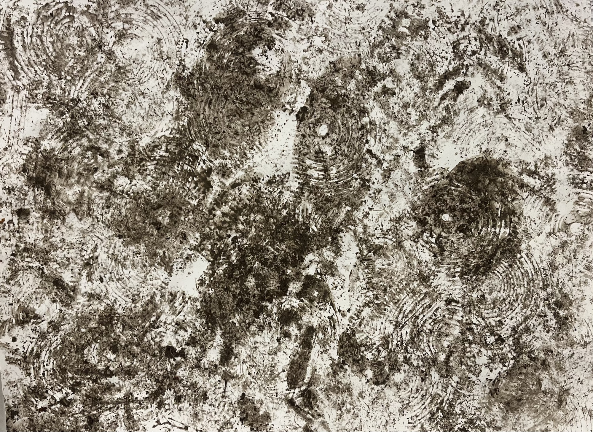 Painting with mud using a stick and my shoes as drawing tools. No thought just movement and playful energy. One of my favorite studio spaces is outside in the natural world.